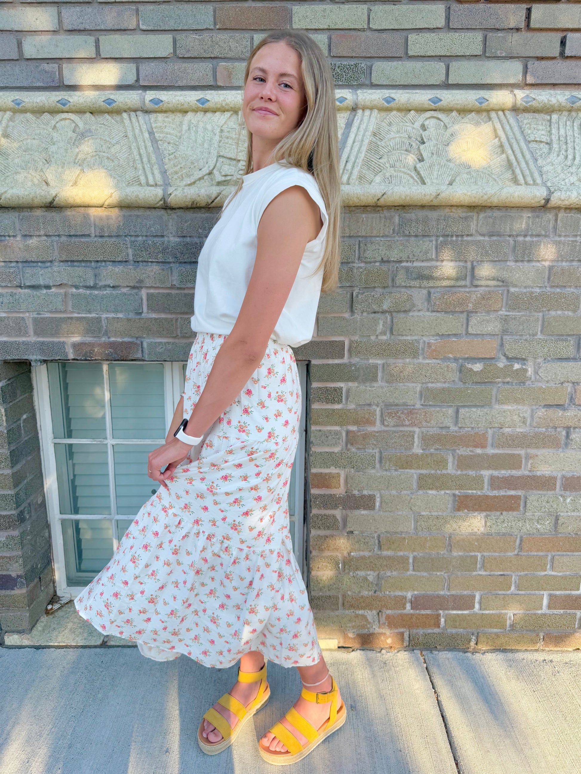 Embrace the warmth of summer with the Blossom Belle Floral Skirt. Its pretty floral pattern and flowy design bring effortless elegance and comfort, while the flexible fabric moves with you for all-day ease. Perfect for sunny days and breezy evenings, this skirt captures the joyful spirit of the season.