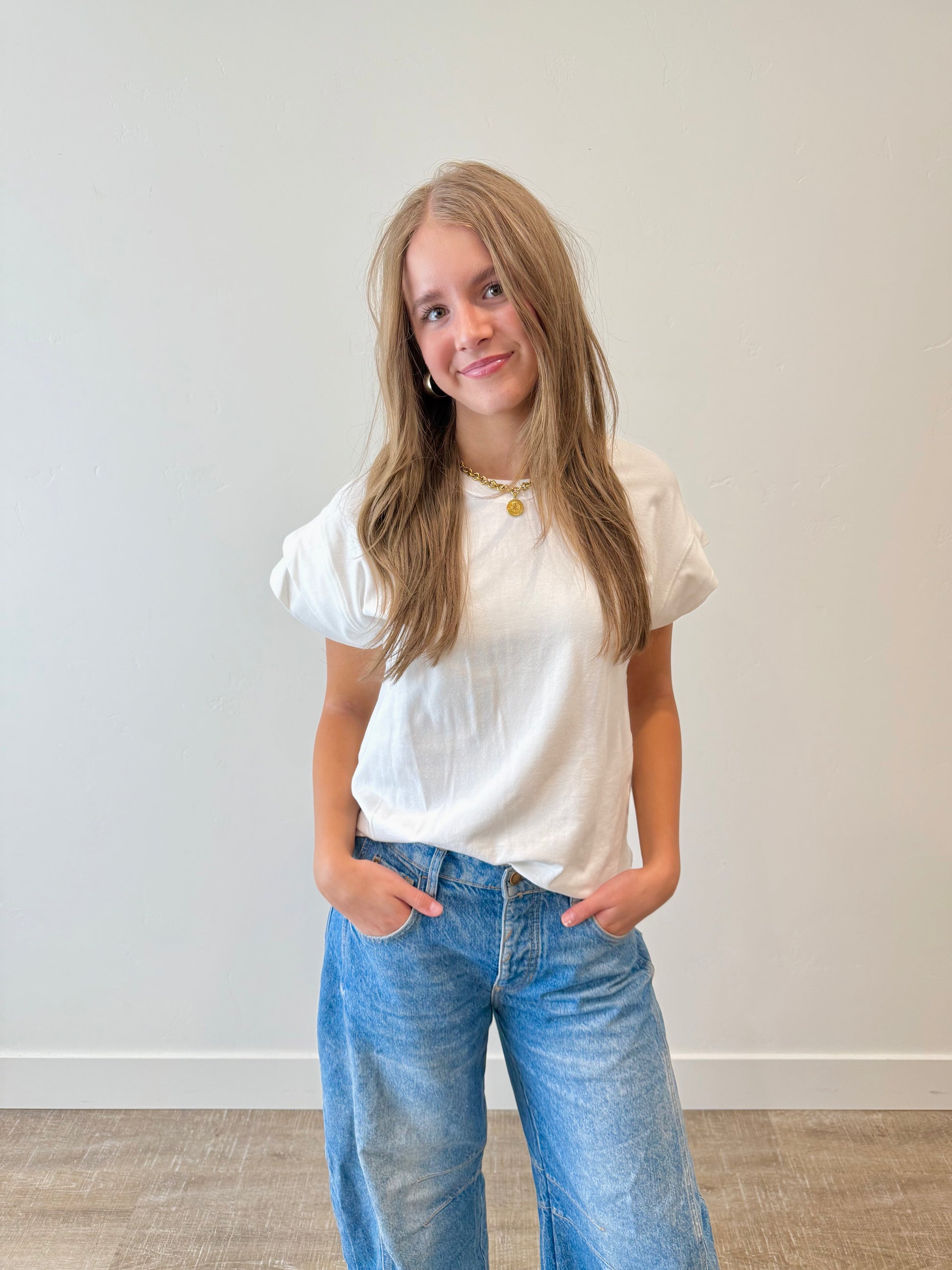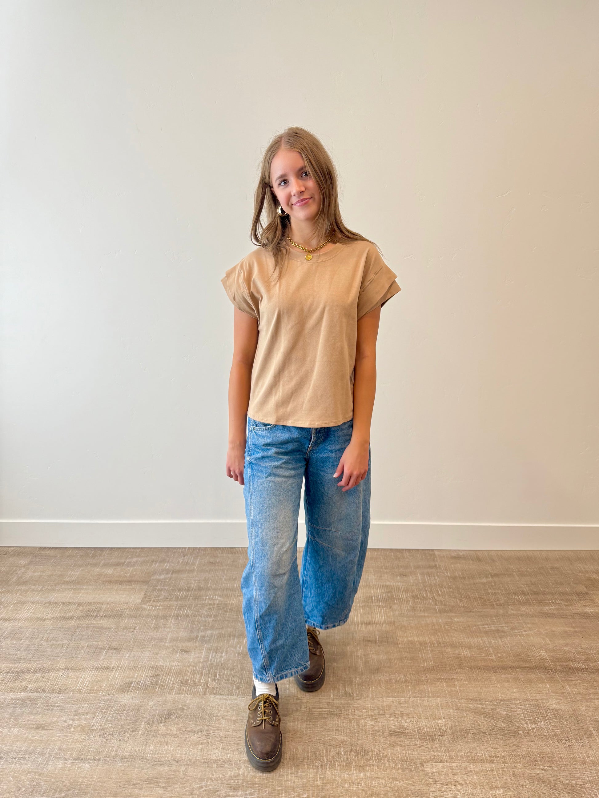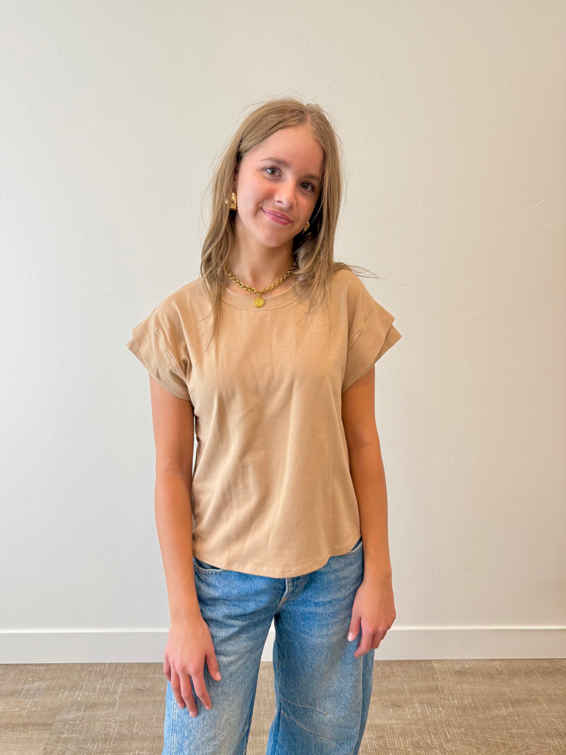 The Breezy Days Top is your new everyday essential. This versatile tee features a charming double-layer short sleeve design with a classic crew neck that works with virtually any outfit in your wardrobe. Available in neutral tones that pair effortlessly with everything, it's designed for a comfortable, just-right fit that moves with you throughout the day. Whether you're running errands or relaxing at home, this easy going top brings an understated charm to your casual style.