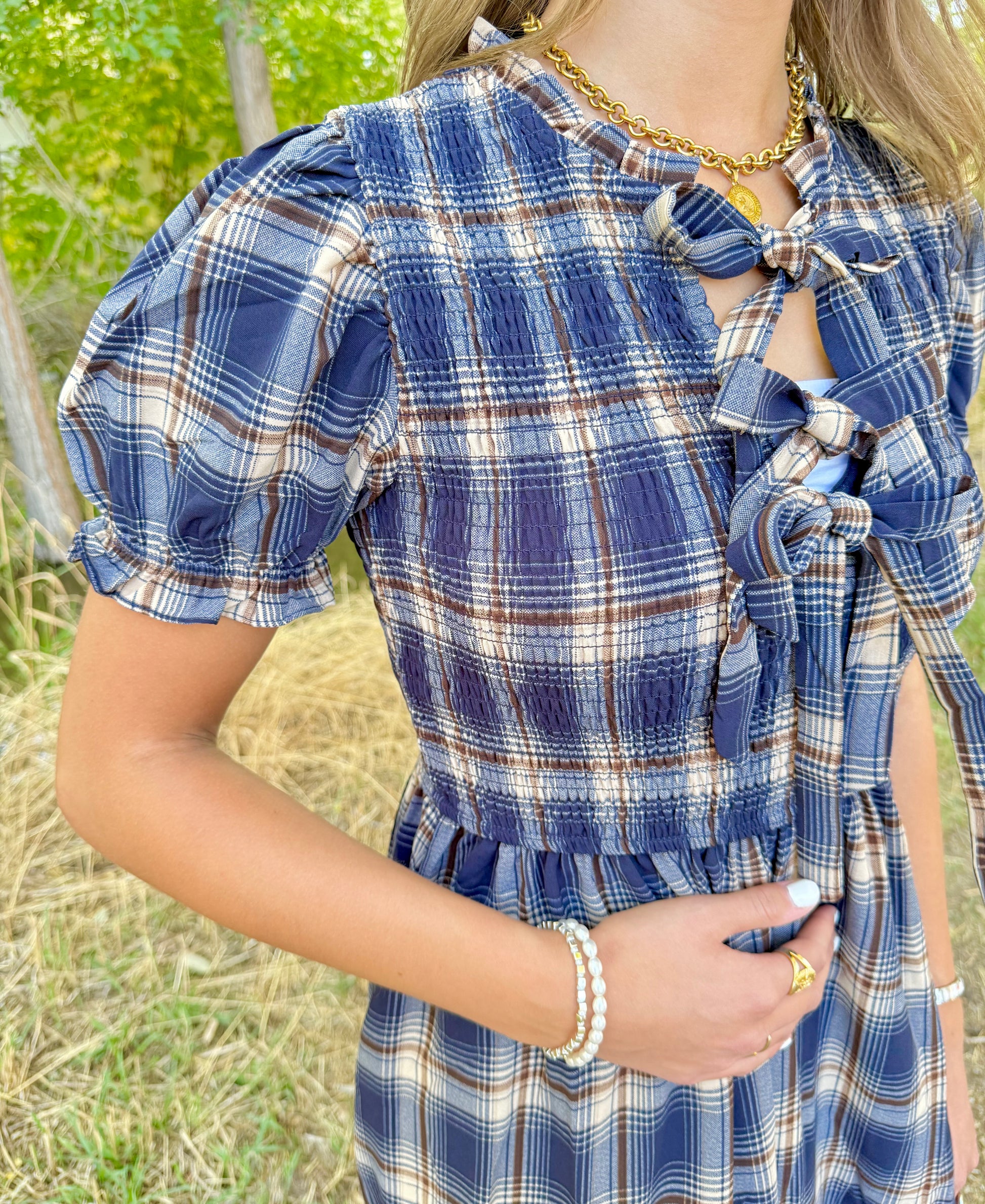 The Hazel Jane Dress combines flattering midi length with puff sleeves featuring a comfortable elastic fit around the arms, ensuring ease of movement all day. Functional front ties add a stylish detail while balancing modesty effortlessly. Designed to be bump friendly, it provides comfort and confidence from morning to night. Available in rich navy and burgundy, this dress is the perfect stylish choice for the fall season.