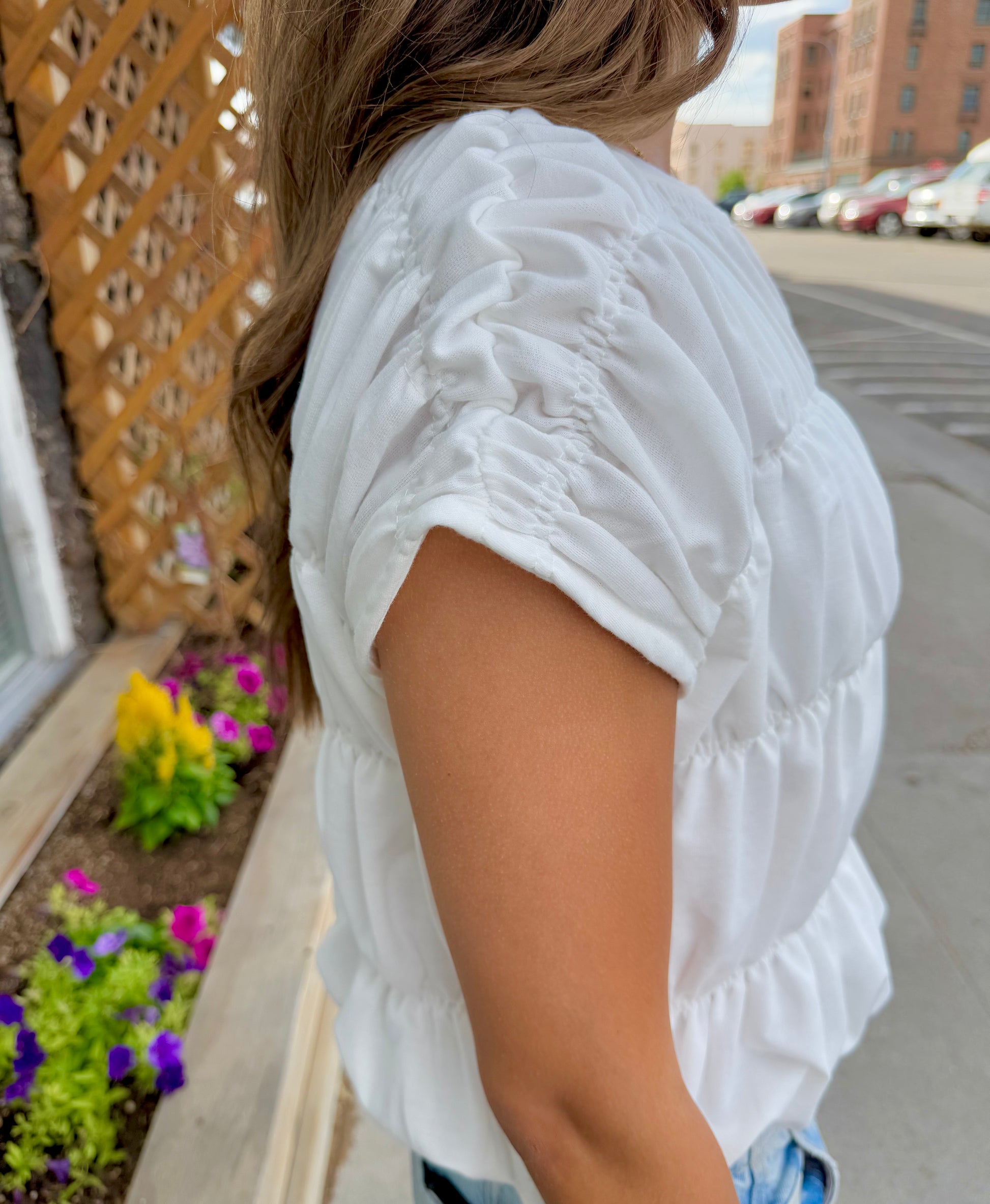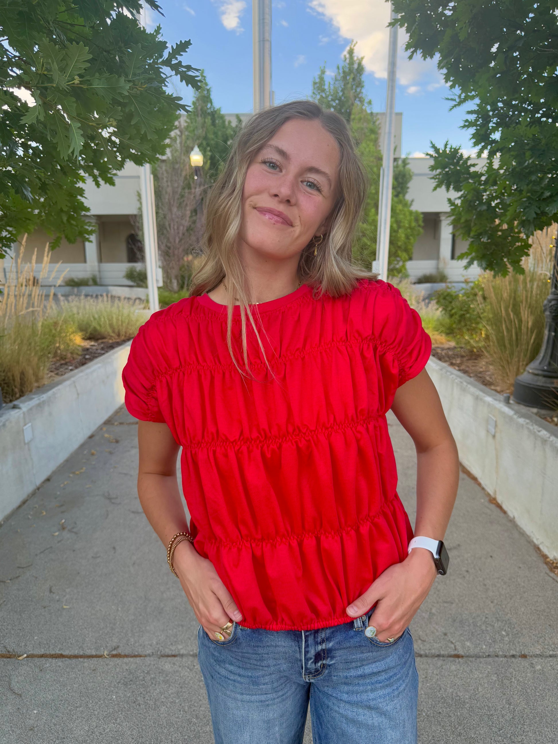 The Shawano Top offers a flattering, flexible fit with great stretch, making it both cute and practical. Its versatile style pairs effortlessly with jeans or a skirt, perfect for creating easy, confident looks for any occasion.